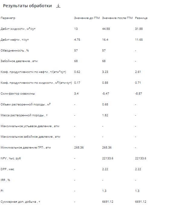 По результатам моделирования отмечается высокая сходимость с фактическим дебитом жидкости после ОПЗ.