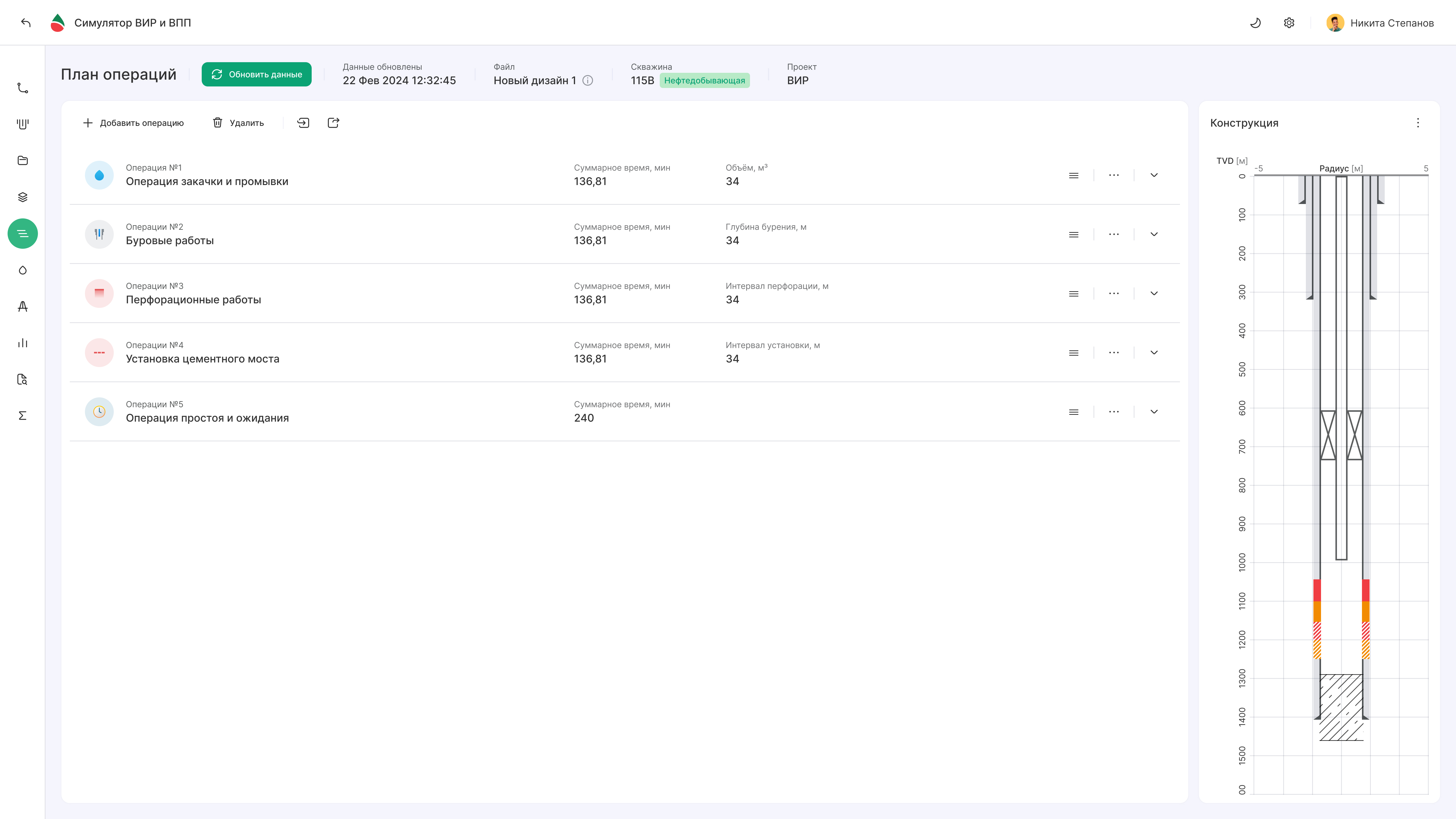 Симулятор ремонтно-изоляционных работ моделирует план ремонтных работ бригады КРС, определеляет их характеристики для прогноза технико-экономической эффективности мероприятия. Приложение позволяет гибко взаимодействовать с входными данными и настраивать отображение результатов на планшете скважины.